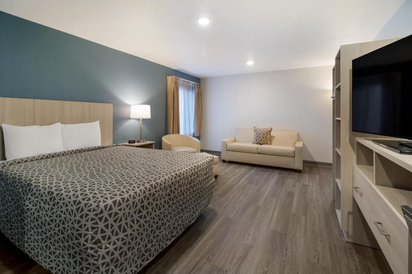 QUEEN SUITE ACCESSIBLE. The air-conditioned suite features 1 bedroom and 1 bathroom with a bath and a shower. The well-fitted kitchenette has a stovetop, a refrigerator and a microwave. The suite provides a wardrobe, parquet floors, heating and a flat-screen TV with streaming services. The unit offers 1 bed. ;