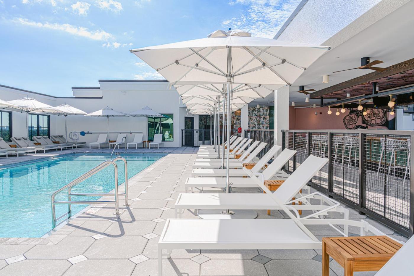 Studio with Pool View. This studio features a rooftop pool. This air-conditioned studio is comprised of a flat-screen TV with streaming services, a private bathroom as well as a balcony with pool views. The unit has 1 bed.